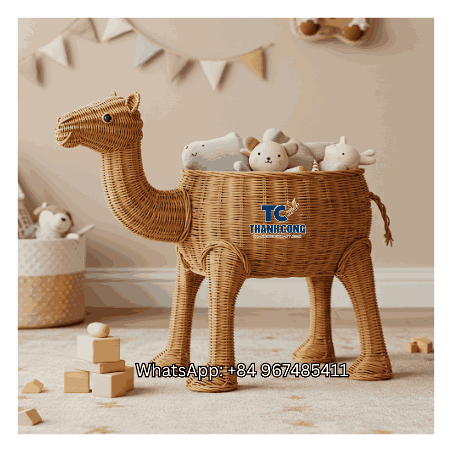 The Camel Rattan Toy Storage Basket is a product made by Thanh Cong Handicraft Export Co., Ltd, a family-owned business based in Hanoi, Vietnam. We have over 100 years of experience in producing handcrafted items from rattan and other natural materials.