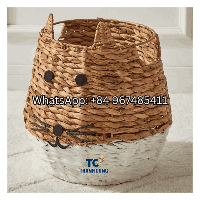Vietnam-Crafted Cat Shaped Water Hyacinth Basket Stylish Kid Toy Storage With A Sturdy Woven Texture – TCKWB 8962