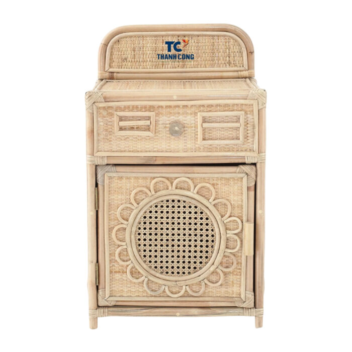 - Side detailing: The sides feature decorative woven rattan patterns, adding a playful and stylish touch.