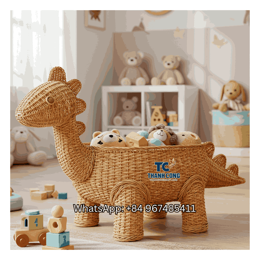 The Dinosaur Rattan Toy Storage Basket is a product made by Thanh Cong Handicraft Export Co., Ltd, a family-owned business based in Hanoi, Vietnam. We have over 100 years of experience in producing handcrafted items from rattan and other natural materials.