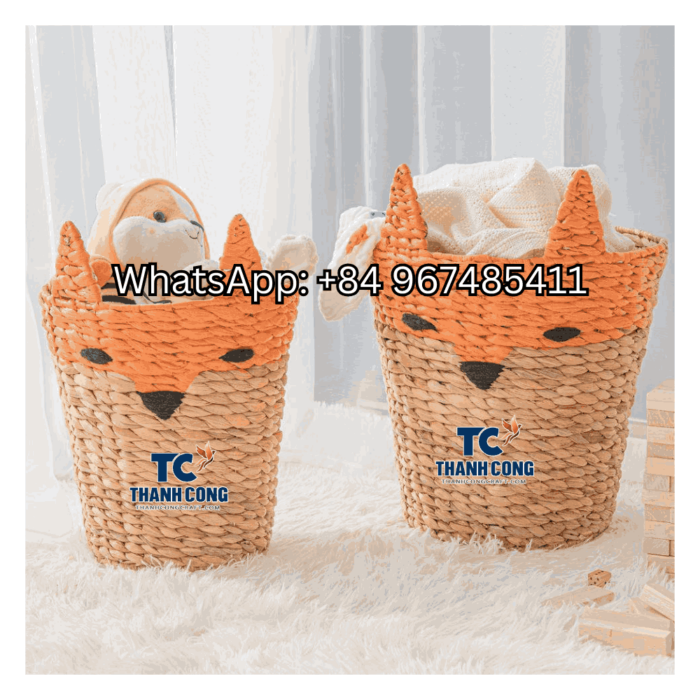Trendy Fox Shaped Water Hyacinth Basket High-Quality Kid Toy Storage With A Minimalist Woven Finish – TCKWB 8951