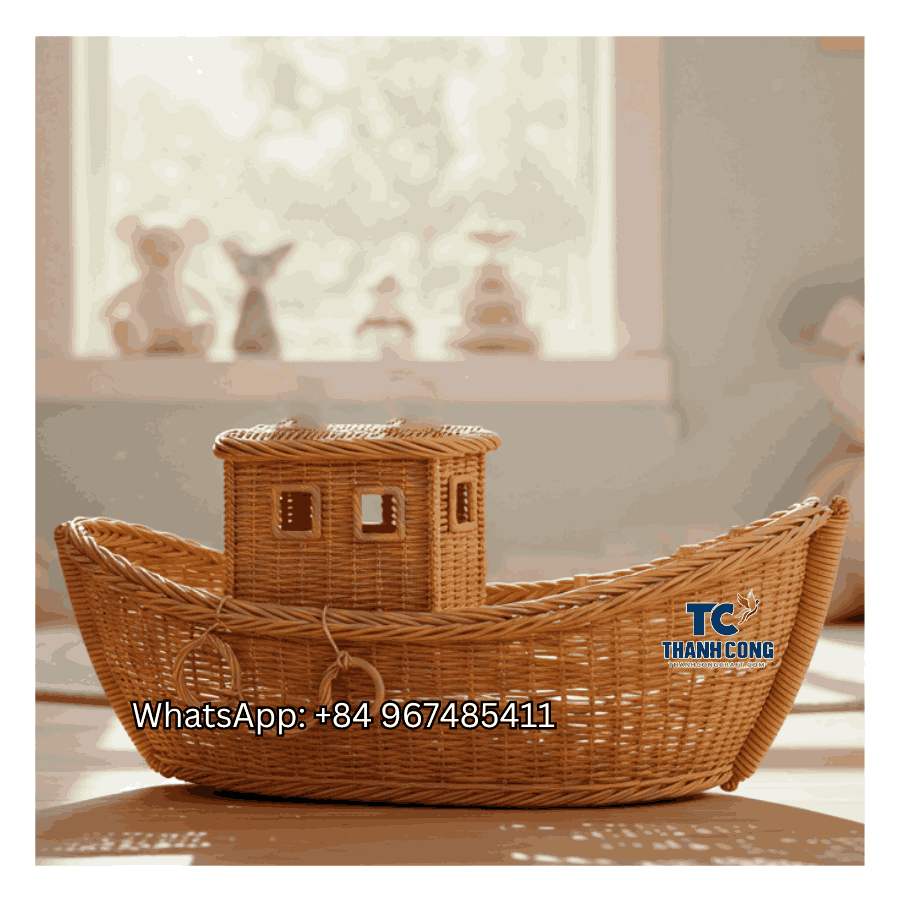 The Handwoven Rattan Fishing Boat Toy is a product made by Thanh Cong Handicraft Export Co., Ltd, a family-owned business based in Hanoi, Vietnam. We have over 100 years of experience in producing handcrafted items from rattan and other natural materials.