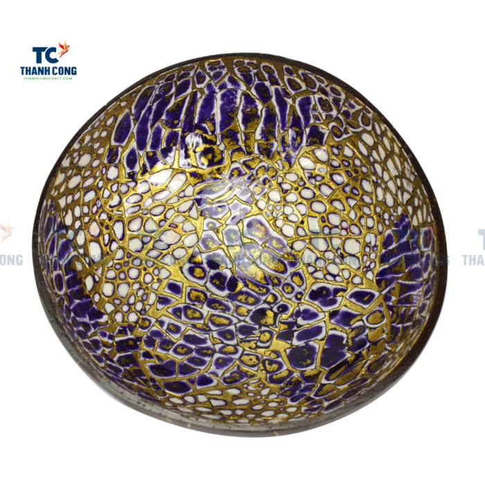 - Besides the natural bowl coconut, we have inlaid Mother-of-pearl, Eggshell inlay and Lacquer on the inner surface of the coconut shell bowl to become a colorful coconut shell bowl that can be used as a Bowl for eating, a Gift, Keys holder…