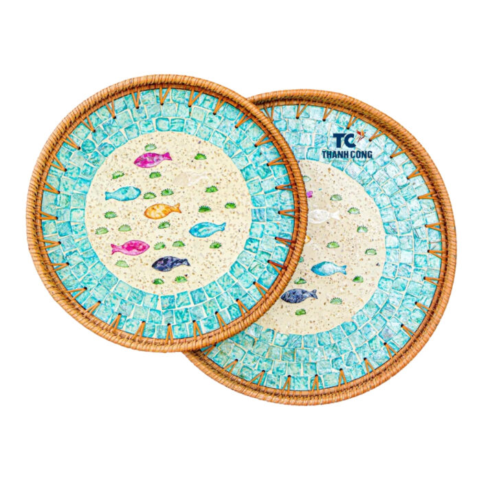 Marine Theme Rattan and Mother of Pearl Tray – TCRTR 8969