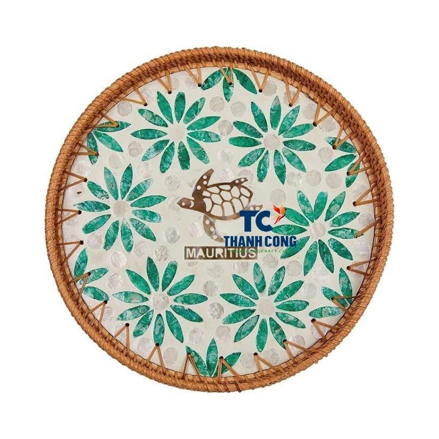 Mother of Pearl Rattan Tray Mauritius Design Wholesale | Handicraft Product From Vietnam Supplier – TCILM 15