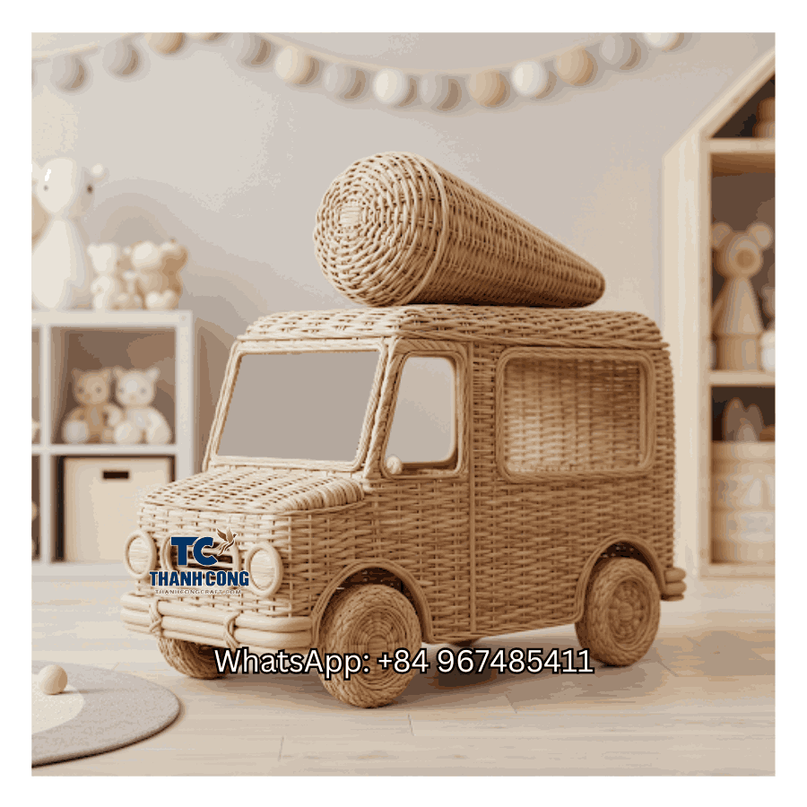The Rattan Ice Cream Truck Toy is a product made by Thanh Cong Handicraft Export Co., Ltd, a family-owned business based in Hanoi, Vietnam. We have over 100 years of experience in producing handcrafted items from rattan and other natural materials.
