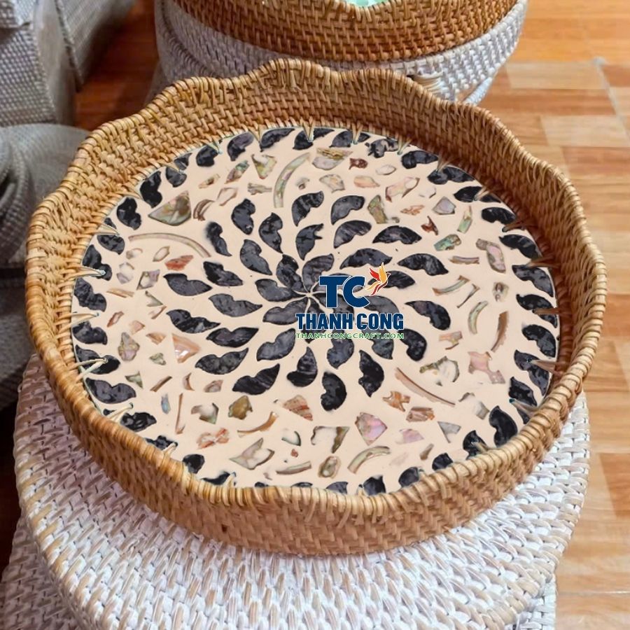 Retail-Supply Mother Of Pearl Rattan Tray For Bulk Buyers – TCRMT 8889W