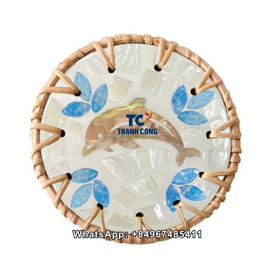 Wholesale Dolphin Mother Of Pearl Coaster With Rattan | Eco-Friendly Kitchen and Dining Accessories – TCRCO 8897