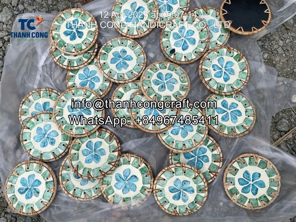 Wholesale Rattan Mother of Pearl Coaster Set Vietnam Handicraft