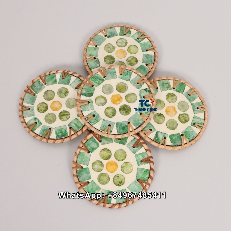 Wholesale Green Rattan MOP Coaster Set | Handcrafted Dining Table Decor – TCRCO 8955