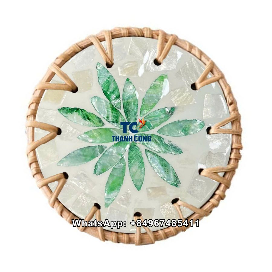 Wholesale Rattan Mother of Pearl Coaster Set Vietnam Handicraft