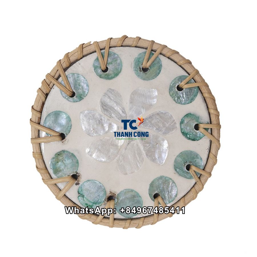 Wholesale Rattan Mother of Pearl Coaster Set Vietnam Handicraft