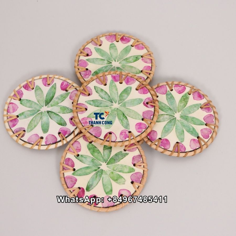 Wholesale Rattan MOP Coaster Set Vietnam Handicraft