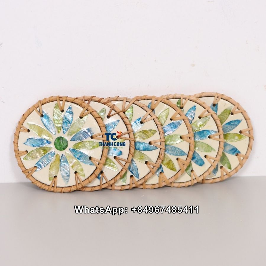 Wholesale Rattan MOP Coaster Set Vietnam Handicraft
