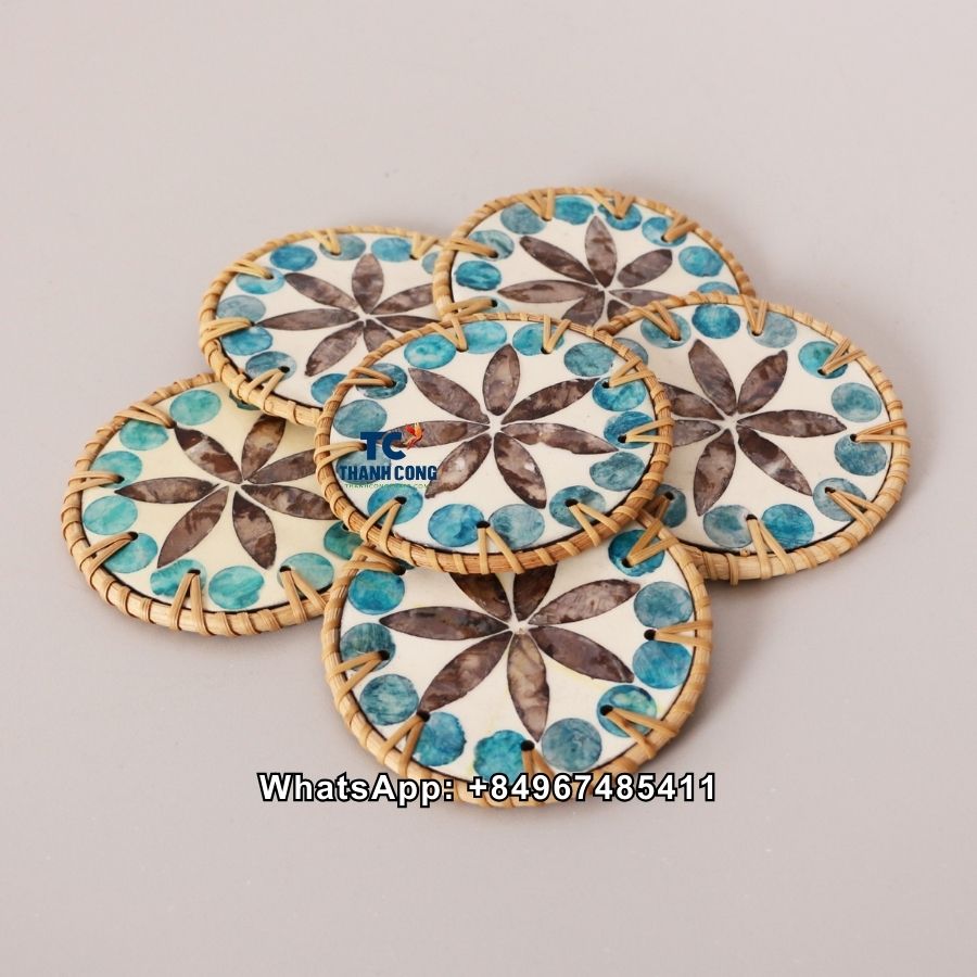 Wholesale Rattan MOP Coaster Set Vietnam Handicraft