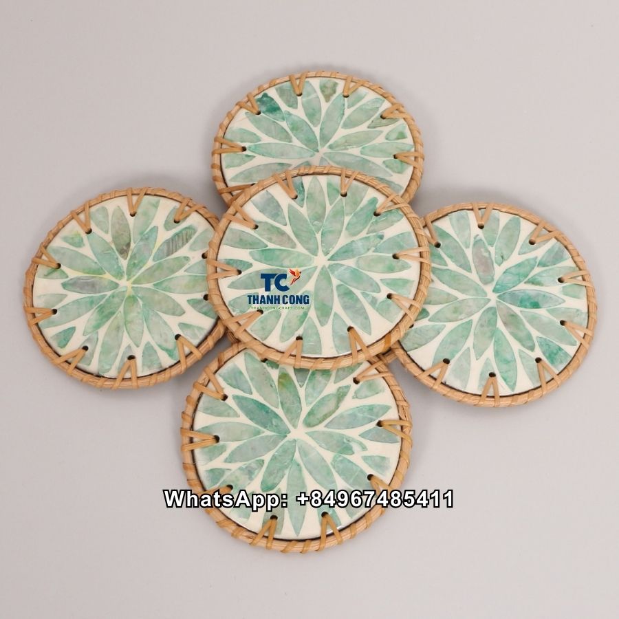 Wholesale Natural Rattan Mother Of Pearl Coaster – TCRCO 8912