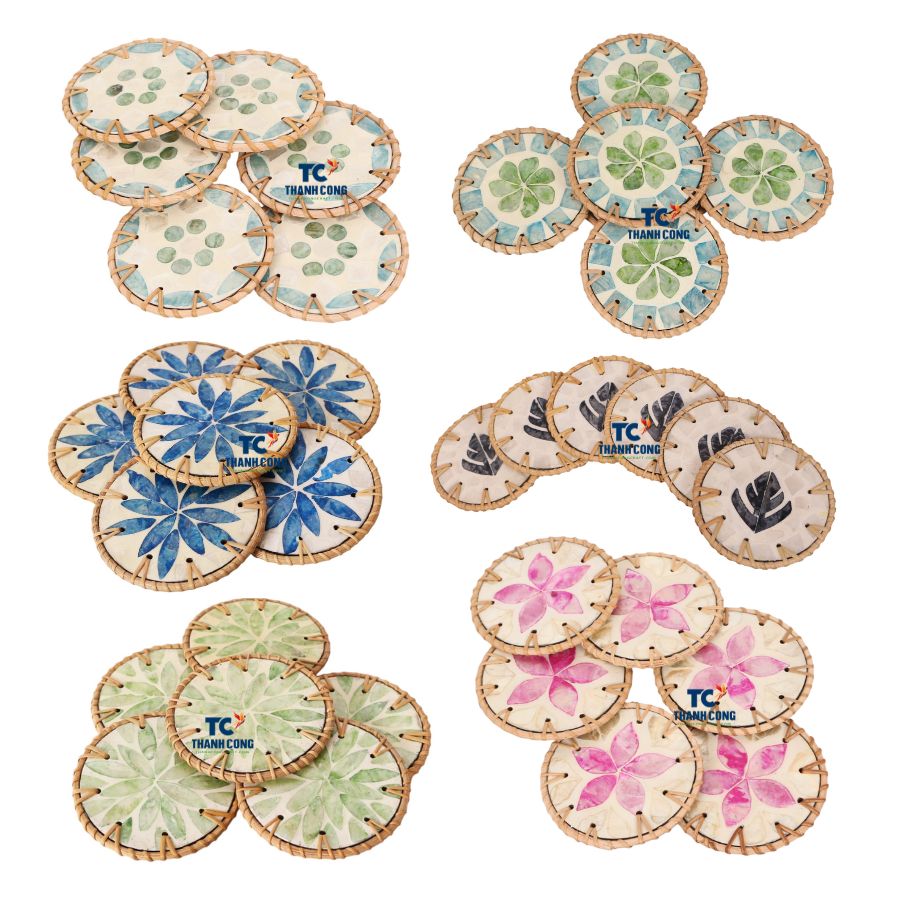 Wholesale Rattan Mother of Pearl Coaster Set Vietnam Handicraft