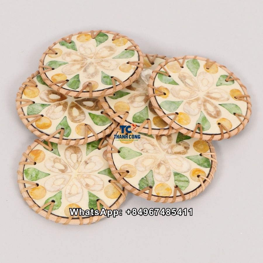 Wholesale Rattan MOP Coaster Set Vietnam Handicraft