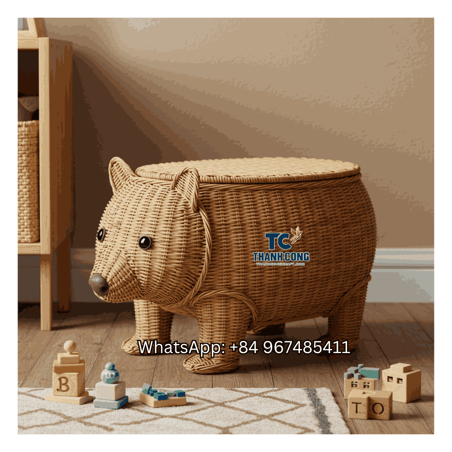 The Wombat Rattan Toy Storage Basket Wholesale – TCKRB 8906Rattan Toy Storage Basket is a product made by Thanh Cong Handicraft Export Co., Ltd, a family-owned business based in Hanoi, Vietnam. We have over 100 years of experience in producing handcrafted items from rattan and other natural materials.